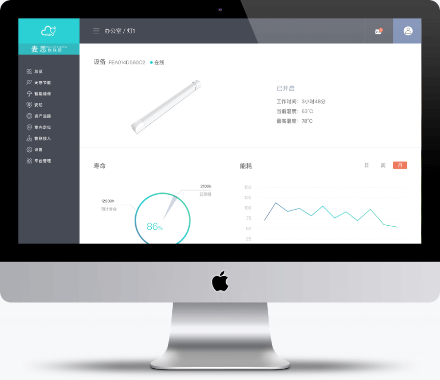 麦思物联能源可视化管理后台,不仅可对智慧灯、空调等智能设备的功耗信息分析,亦可对智慧设备损耗状况呈现,避免设备老化损坏造成过多能耗,为管理、运维者决策提供参考信息。